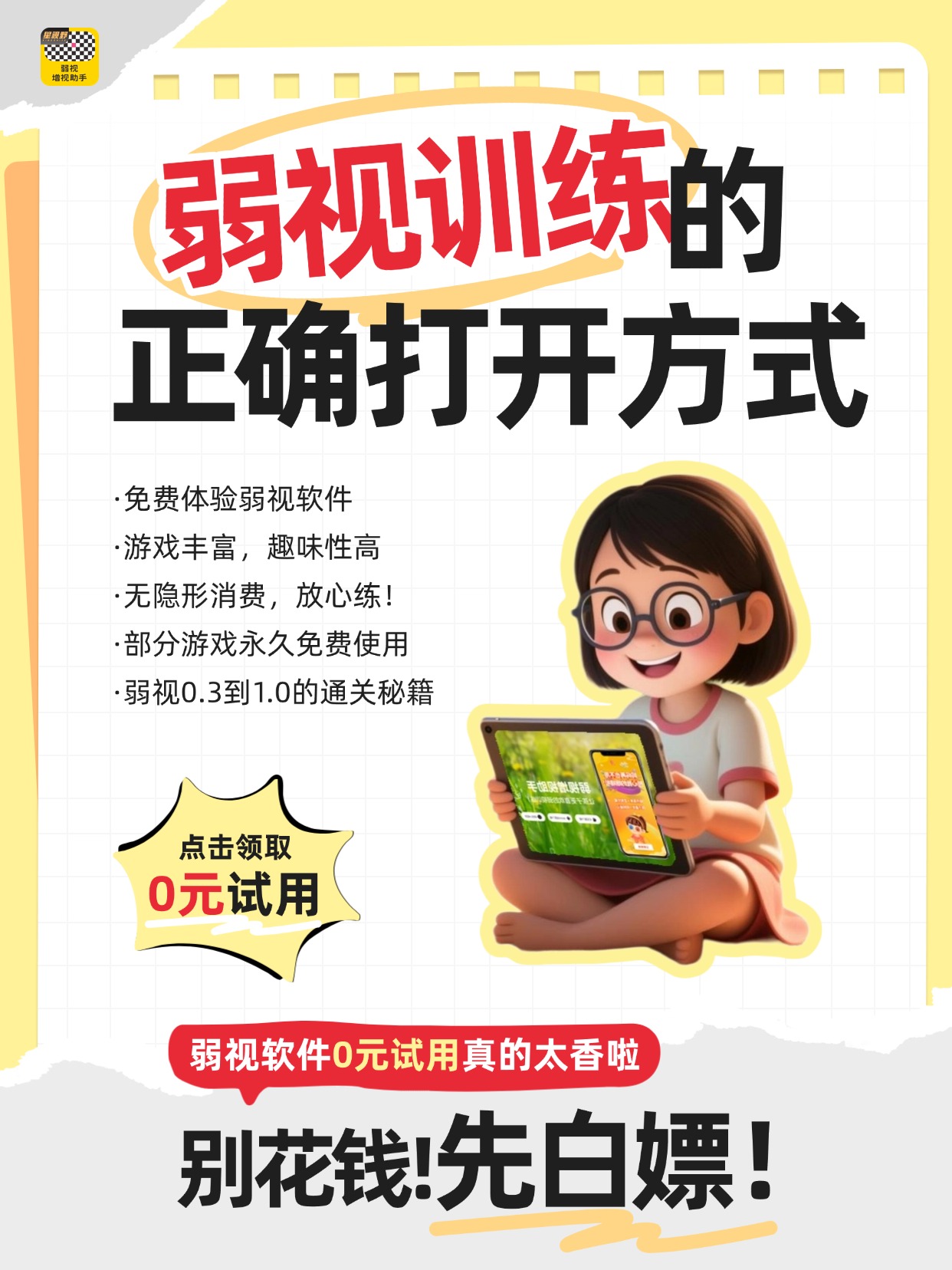 家长们:在投入长期成本之前,可以先薅“弱视增视助手”的免费试用机会。