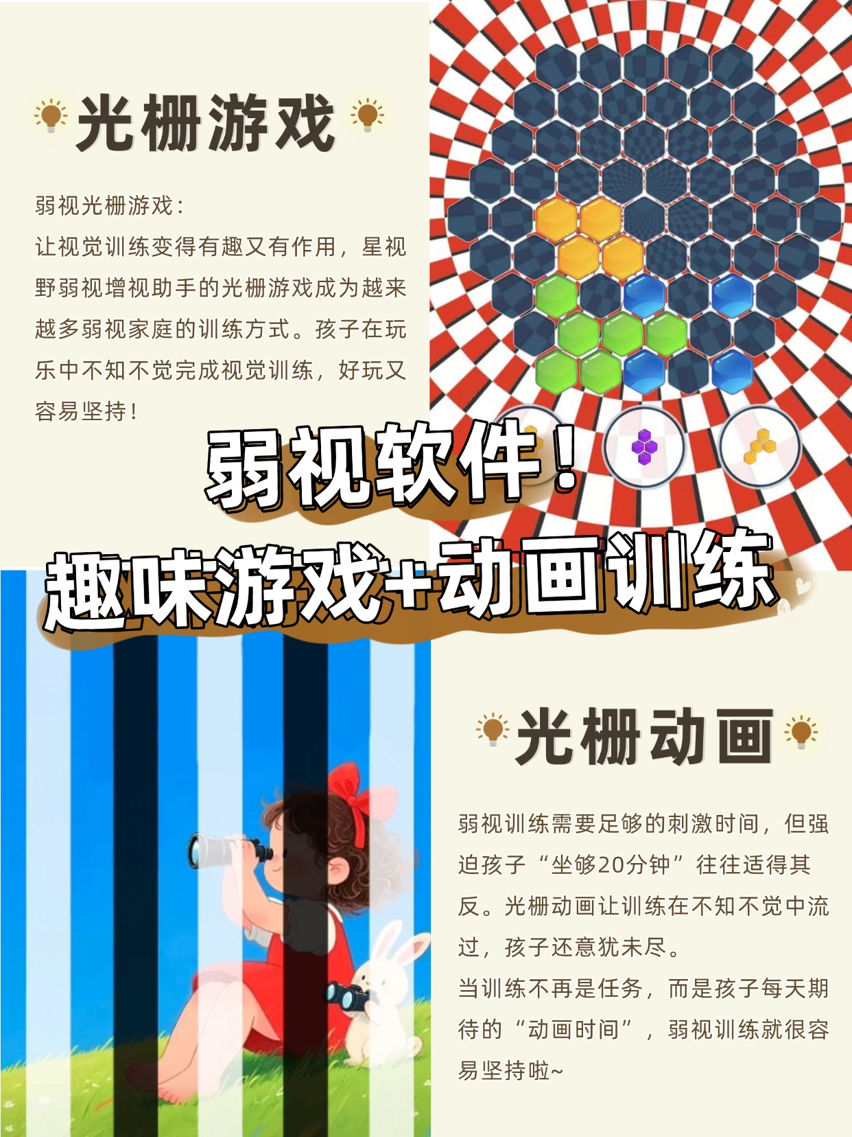 弱视训练,不止于“玩”,每一关游戏,每一集动画的背后,都有明确的训练目标