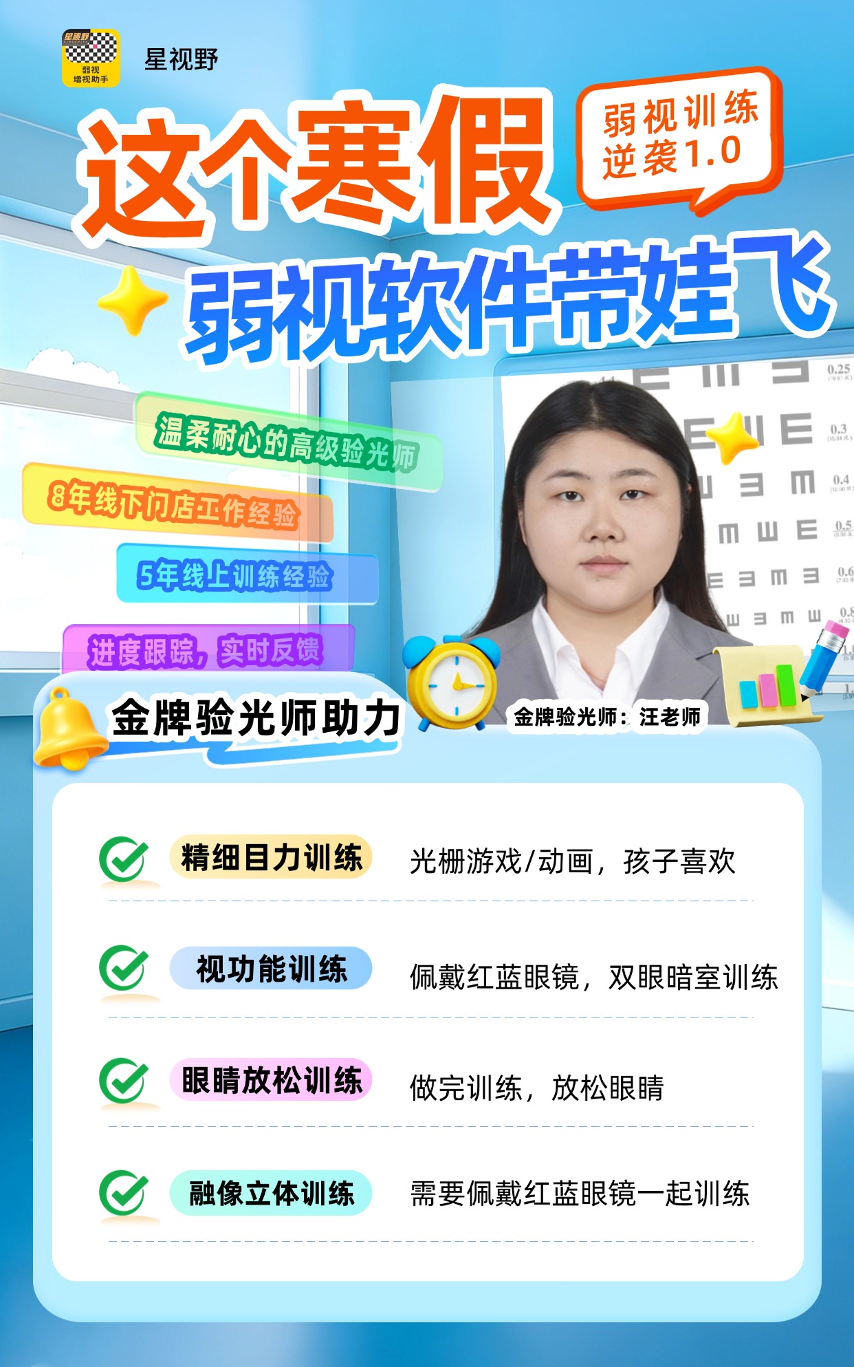 星视野弱视增视助手的金牌验光师及其团队,正式发起「寒假带飞计划」